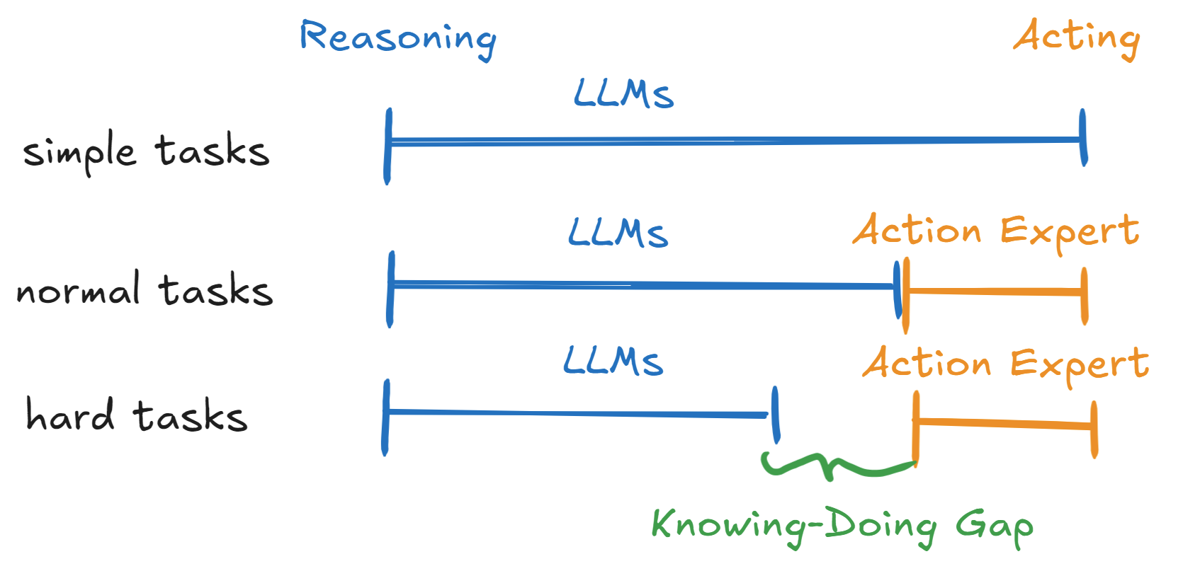 This chasm between what the reasoning model knows and what the acting model can do is what I call the knowing-doing gap. I believe the onus is on the Acting module to bridge this gap, primarily because the reasoning capabilities of foundation models are advancing at a breathtaking pace that shows no signs of slowing down.